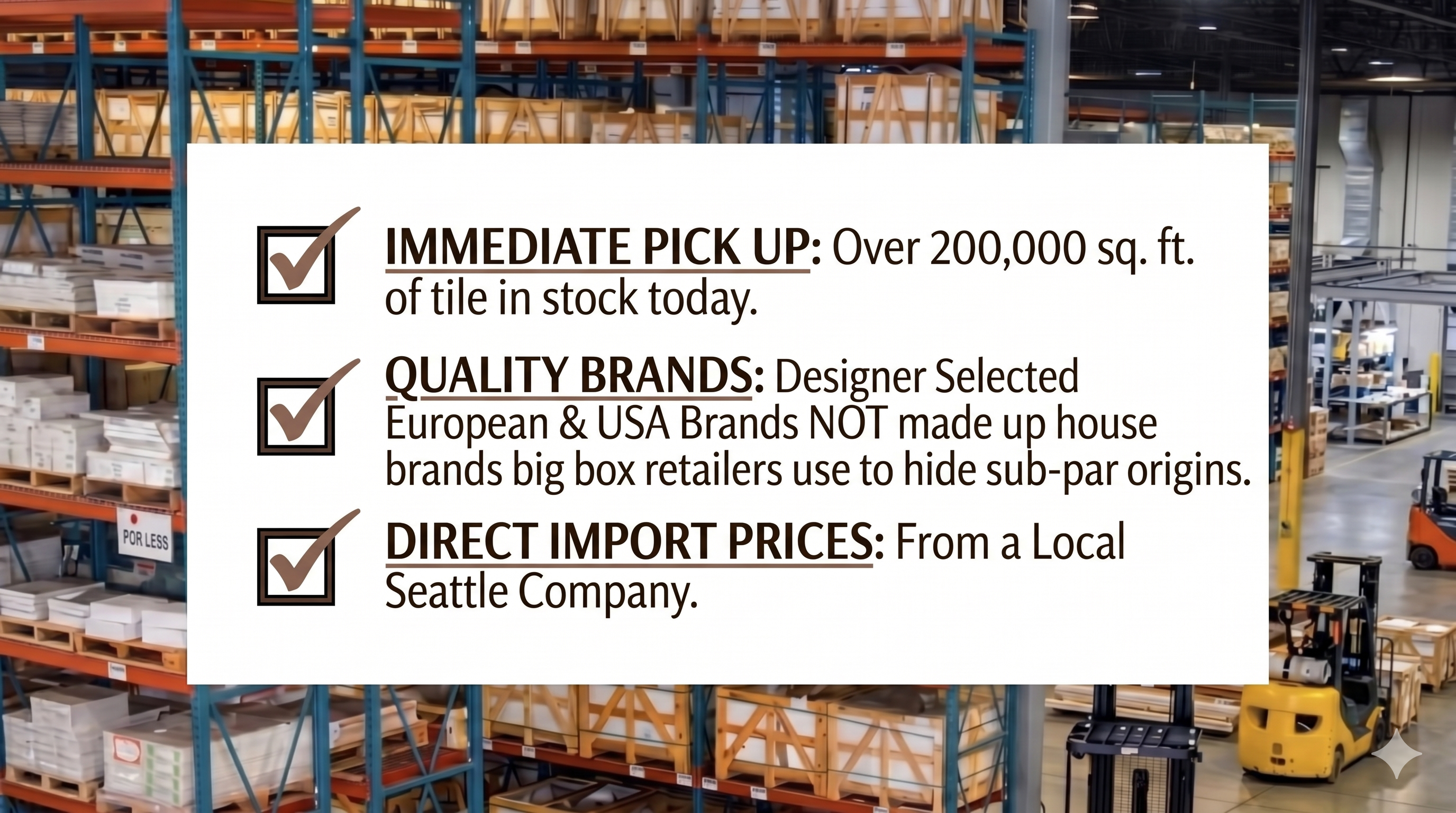 If you’re searching for high-quality tile in Seattle, WA, you’ve just found your new favorite place. Tile For Less is your go-to destination for beautiful, affordable tile, countertops, granite, stone slabs, and more—all with the friendly, personal service you’d expect from a local, family-owned business.
