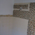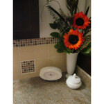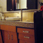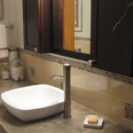 We fell in love with the large granite tiles that we used on our kitchen remodel 3 years ago and we used them for our bathroom. We budgeted $1,500 to $2,000 for the bathroom remodel…we only spent $1,200…I think it is a real bargain for a great look. Of course we did all of the work ourselves and I was able to leave the oatmeal colored tiles in place for the majority of the bathroom floor and walls. I am proud to say I cut all of the granite for the counter and window sill…did the tiling…demoed all of the old 50s taupe tile…also did the wallboard, taping and mudding. My husband did the plumbing and electric…not bad for a 61 and 63 year old. Tell your customers it can be done on a very low budget and by amateurs…old ones at that!!!